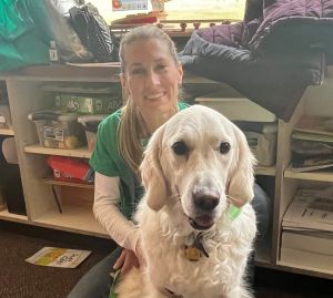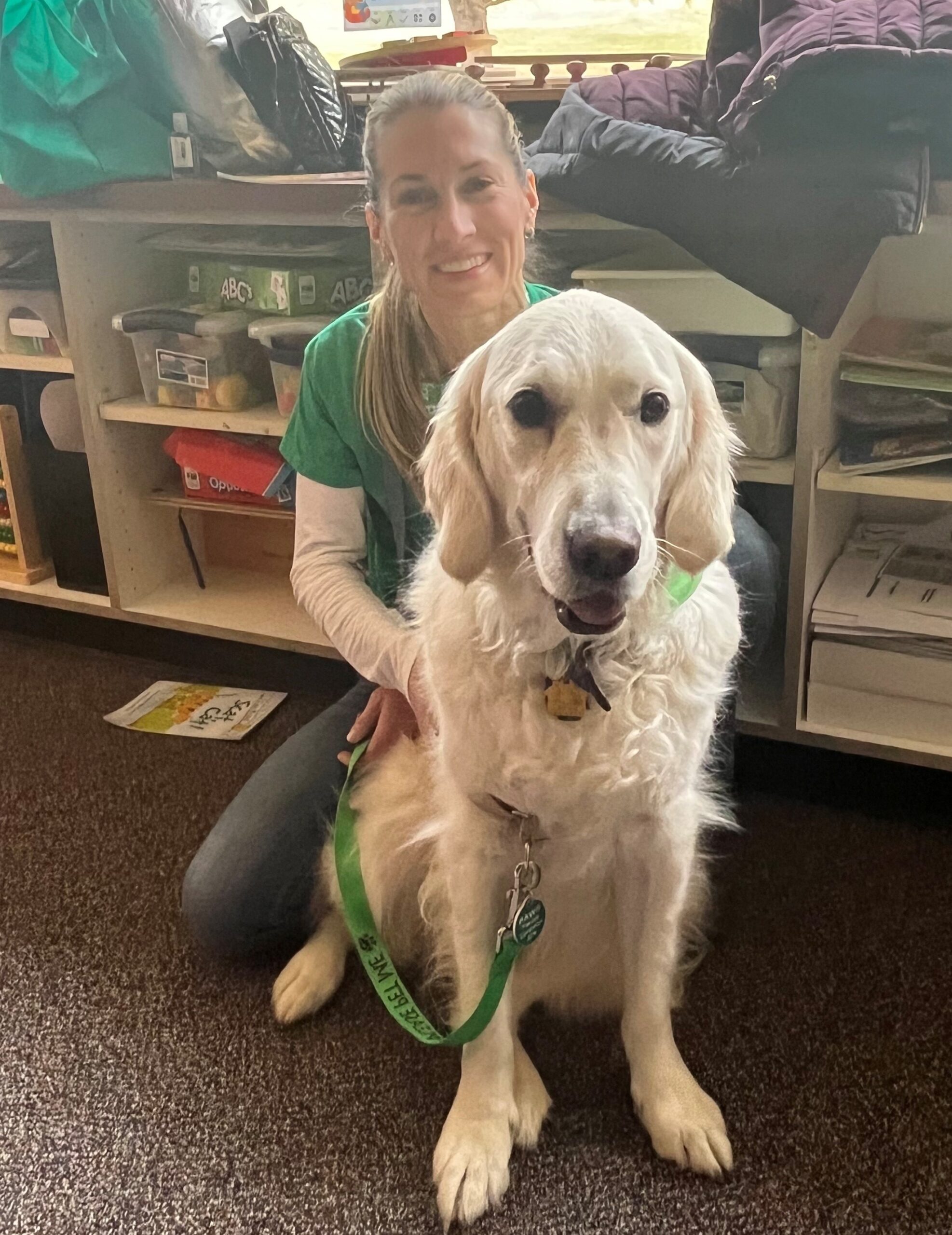 Chelsea Wirth is a dedicated parent of three. As a parent volunteer, she was very involved in her children’s school, where she first saw PAWS for People’s pet therapy in action. When her family welcomed Sky, an English Crème golden retriever into their lives, her friendly demeanor inspired Chelsea to have her certified. They joined PAWS in April of 2024, and currently visit at Hillendale and Chadds Ford Elementary schools.