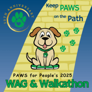 Now every walk you and your dog take can make a difference. During the WAG & Walkathon – and all year long – your walks can translate to donations to PAWS for People.